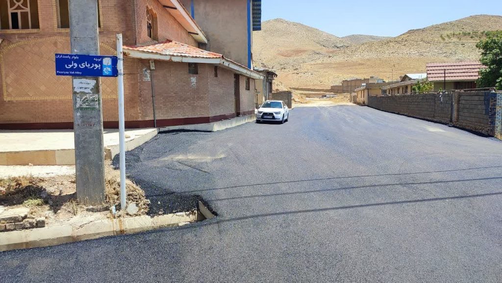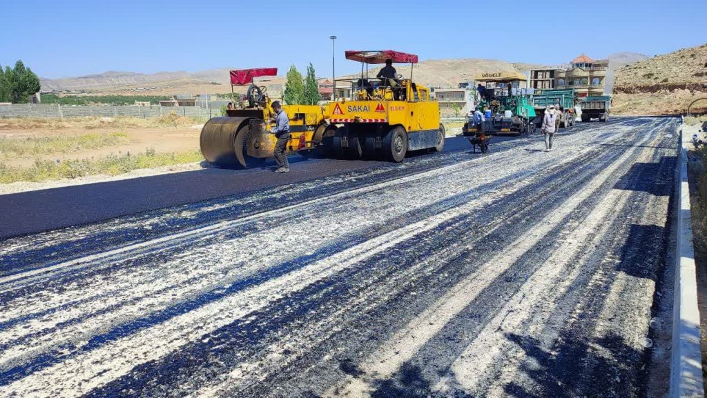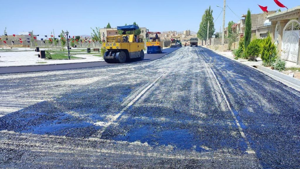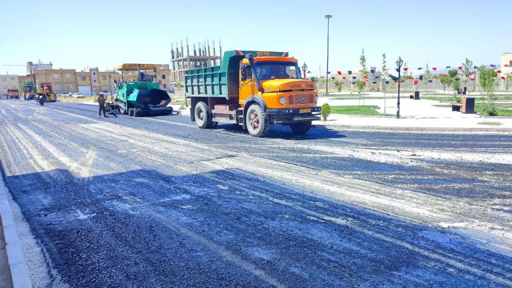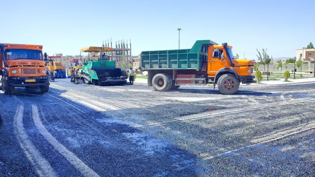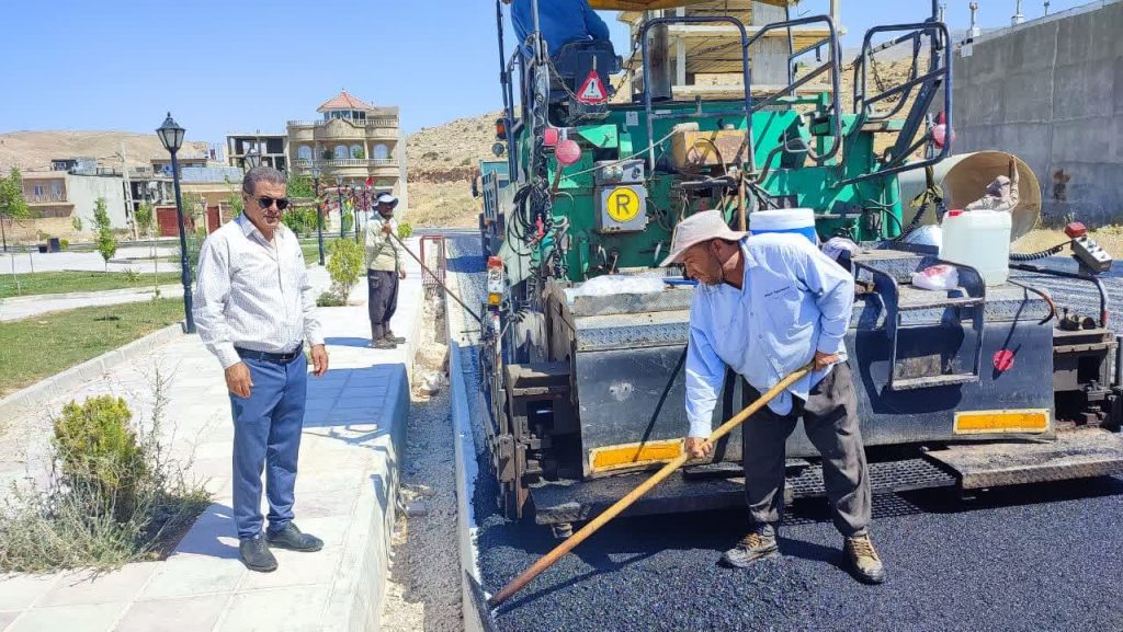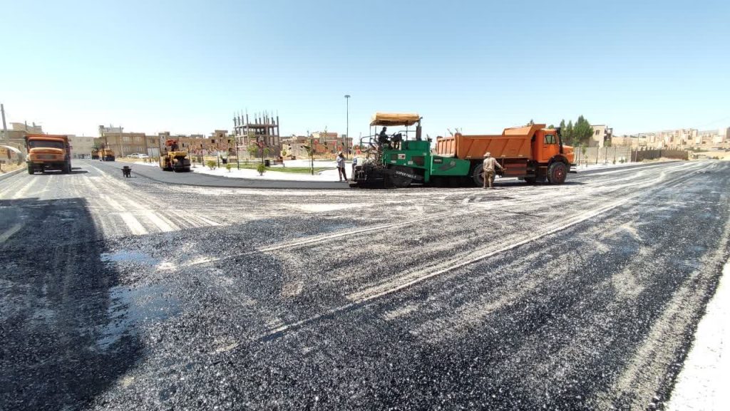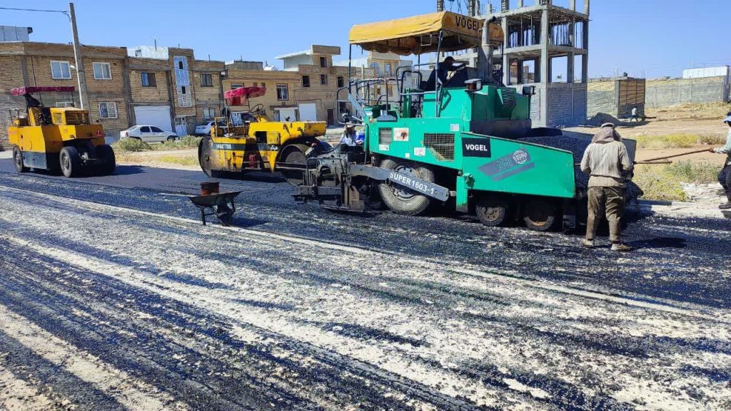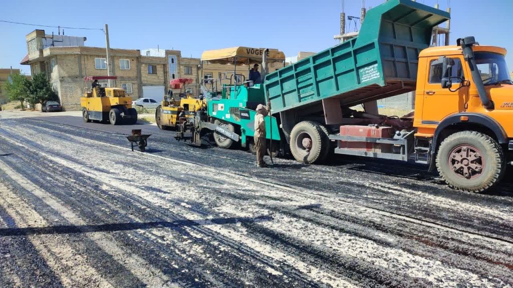 عملیات اجرایی آسفالت کوچه زورخانه ورزشی پوریای ولی جنب استخر ورزشی مارگون شهر اردکان و خیابان شانزده متری حاشیه بوستان محله ای واقع در چهارده هکتاری شهرک شهید قاضی توسط واحد عمران شهری شهرداری شهر اردکان تیرماه ۱۴۰۴