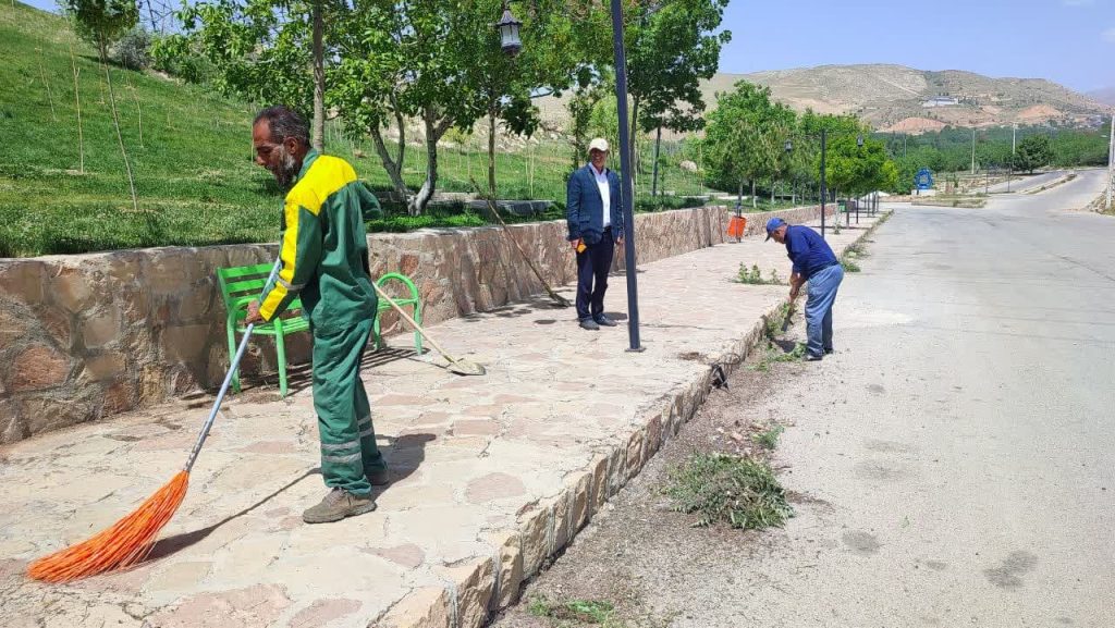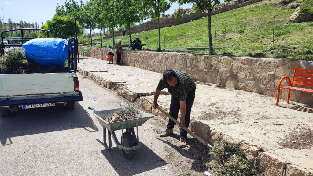 آغاز عملیات پاکسازی معابر، جداول, سرزنی چمنها و رفع معایب روشنایی پارک غدیر ( کوهپایه) شهر اردکان جهت آماده سازی برای بزرگداشت روز سپیدان توسط نیروهای فضای سبز و تاسیسات شهری شهرداری اردکان فارس شانزدهم اردیبهشتماه ۱۴۰۴