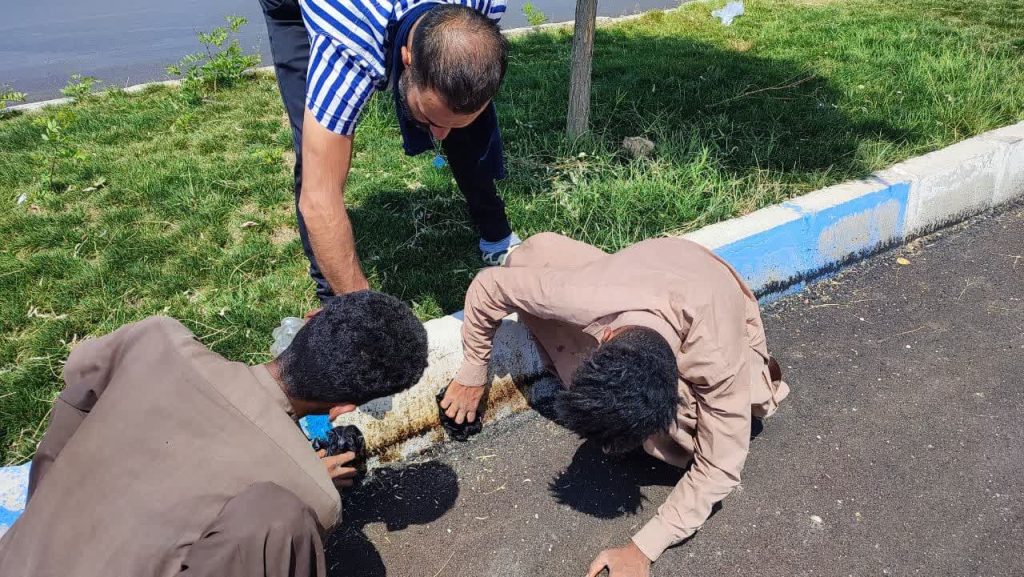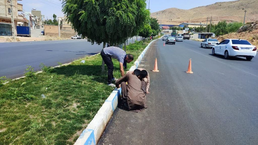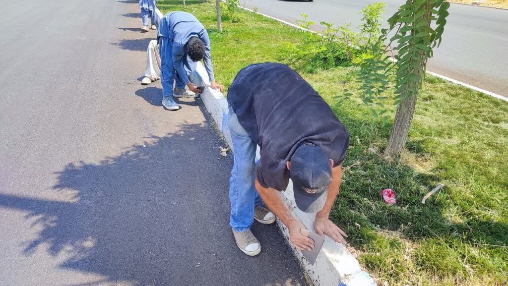 آماده سازی جدول بلوار شهید سلیمانی ابتدای میدان آرتاکن تا انتهای حوزه خدمات شهری شهرداری شهر اردکان جهت رنگ آمیزی با هدف زیبا سازی و افزایش ایمنی توسط واحد عمران شهری شهرداری شهر اردکان.