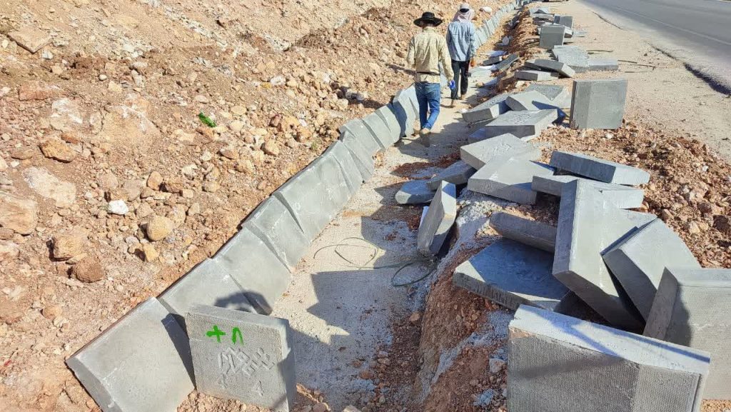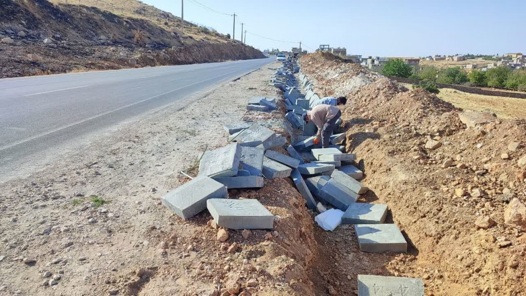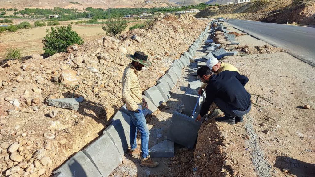عملیات اجرایی جدول گذاری از ابتدای کمربندی شهرک شهید قاضی تا پارک غدیر ( کوهپایه) به طول ۱۶۰۰ متر با هدف دفع آبهای سطحی و ایجاد رفیوژ و تأمین ایمنی تردد توسط واحد عمران شهری شهرداری شهر اردکان مرداد ماه ۱۴۰۴
