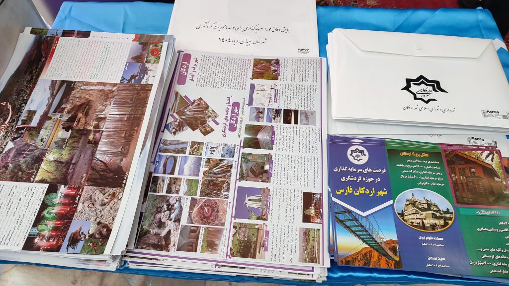 در این همایش یک روزه که روز پنج شنبه چهارم دیماه در سالن همایش دانشگاه آزاد اسلامی واحد سپیدان برگزار شد علاوه بر حضور شهردار، رئیس و اعضای شورای شهر و کارکنان در این همایش، شهرداری اقدام به برپایی غرفه و نمایشگاهی تحت عنوان فرصت های سرمایه گذاری در حوزه گردشگری شهر اردکان فارس را تهیه و در قالب کلیپ، تراکت، برشور و نصب بنر در معرض دید بازدید کنندگان به نمایش گذاشت.