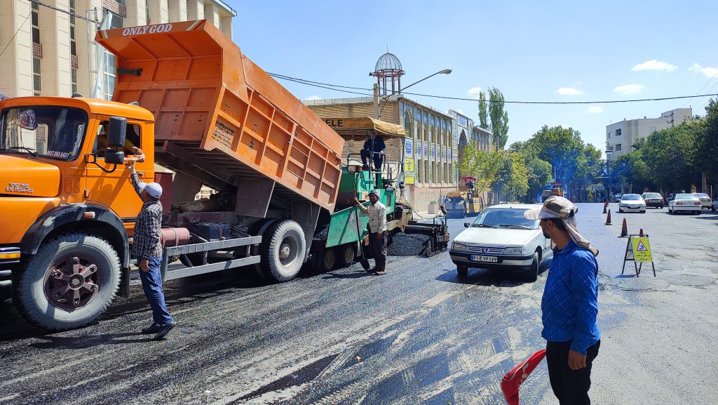 اجرای عملیات روکش آسفالت خیابان میدان قدس حد فاصل اداره کار نبش کوچه بصیرت تا در مانگاه تامین اجتماعی شهرستان به مساحت ۳ هزار متر مربع توسط واحد عمران شهری شهرداری شهر اردکان مهرماه ۱۴۰۴