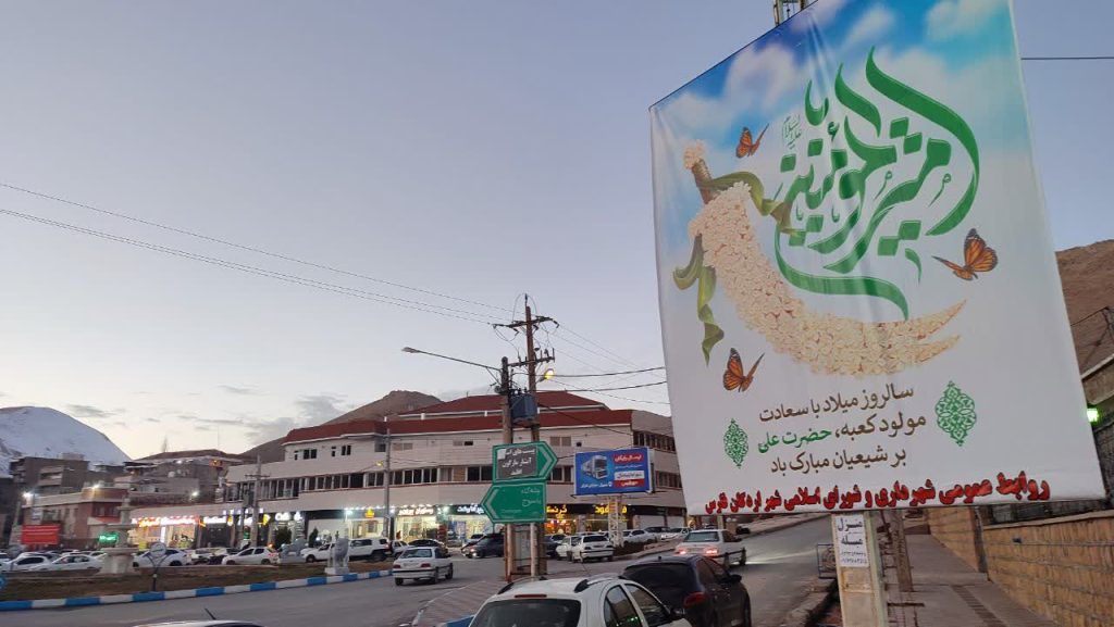 نصب بنر به مناسبت سالروز ولادت حضرت علی (ع ) توسط شهرداری اردکان