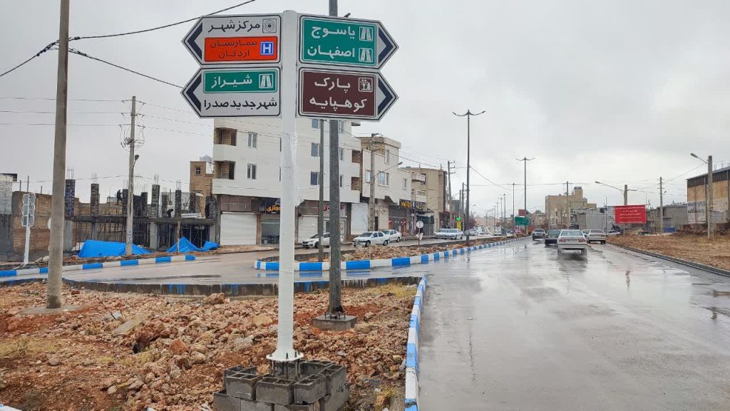 نصب و آشکار سازی تابلو و علایم در اطراف میدان آرتاکن جهت راهنمای مسیر ورود به شهراردکان، شهرک های شهید قاضی، کوی شهرداری و شهرهای قرار گرفته در مبادی ورودی و خروجی از سمت شیراز و یاسوج در راستای سیاست های شورای ترافیک شهرستان توسط واحد حمل و نقل و ترافیک شهرداری شهر اردکان